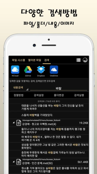 - 정렬: 이름, 크기, 날짜입니다.