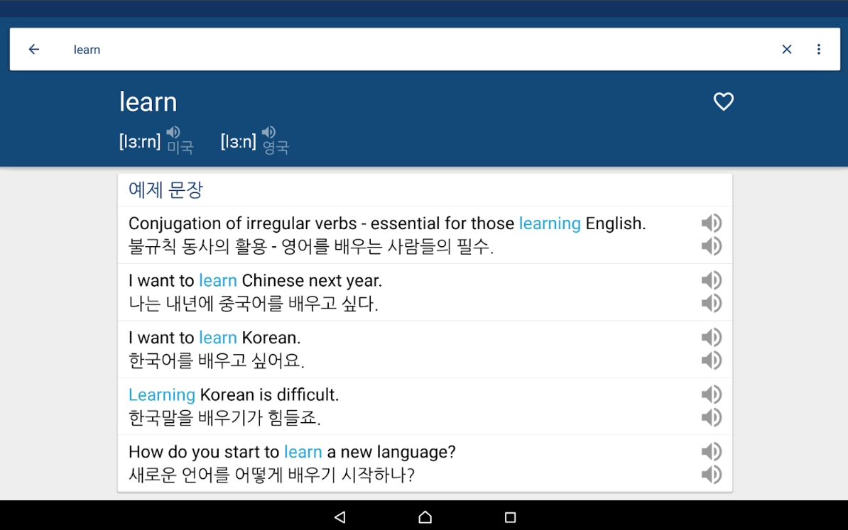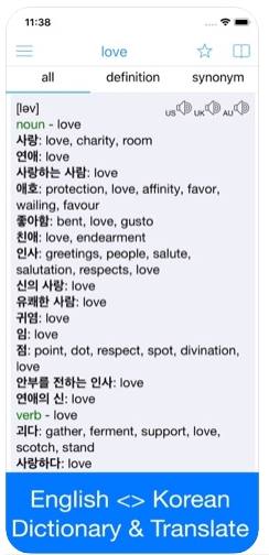 영한사전 / 한영사전은 영한, 한영 번역뿐 아니라 표준 미국식 영어, 영국식 영어 및 한국어의 정확한 발음과 상세한 해석을 제공합니다. 모르는 영어 단어가 있나요? 바로 사용해 보세요!