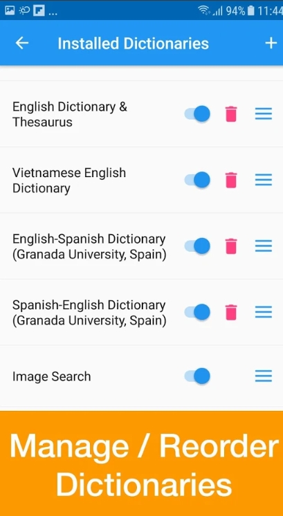 영한 번역을 제공합니다. 한영 번역을 제공합니다. 인터넷 연결이 필요하지 않습니다. 빠르고 간편하며 손쉽게 사용할 수 있습니다. 매우 뛰어난 단어 추천 기능을 이용해보세요. 모든 사전이 수록되어 있습니다. 단어를 터치하시면 뜻을 확인하실 수 있습니다. 웹사이트와 다른 앱의 텍스트를 바로 해석하세요. 문장에 대해 발음 기능을 지원합니다. 그림 사전을 제공합니다. 암기장 기능을 제공합니다. 다양한 사전을 설치하실 수 있습니다. 이 외에도 많은 유용한 기능들을