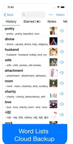 • 즐겨 찾는 단어 및 검색 기록 – 학습한 단어에 대한 복습 기능