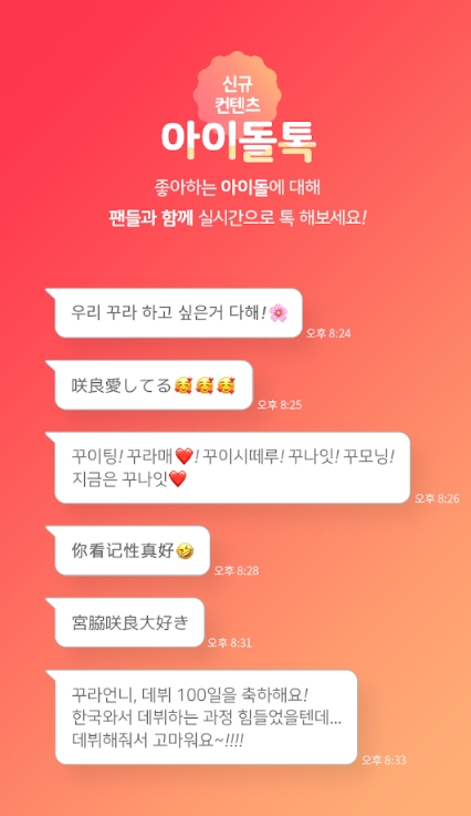 - 좋아하는 아이돌에 대해 팬들과 함께 실시간으로 채팅해보세요!