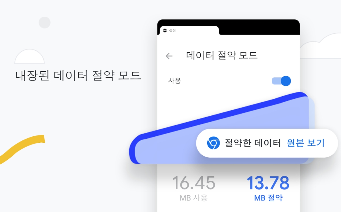 모바일 데이터 절약 및 웹 속도 개선 라이트 모드를 사용해 최대 60퍼센트의 데이터를 절약하세요. Chrome에서 품질 저하 없이 텍스트, 이미지, 동영상, 웹사이트를 압축해 줍니다.