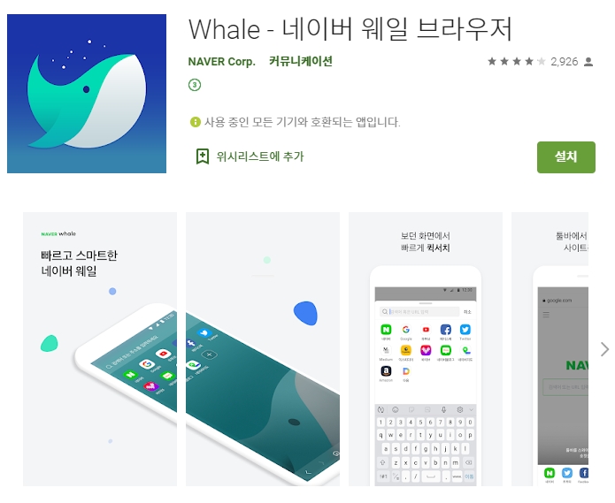 ▶ 네이버웨일 브라우저 어플 : 구글플레이스토어 다운