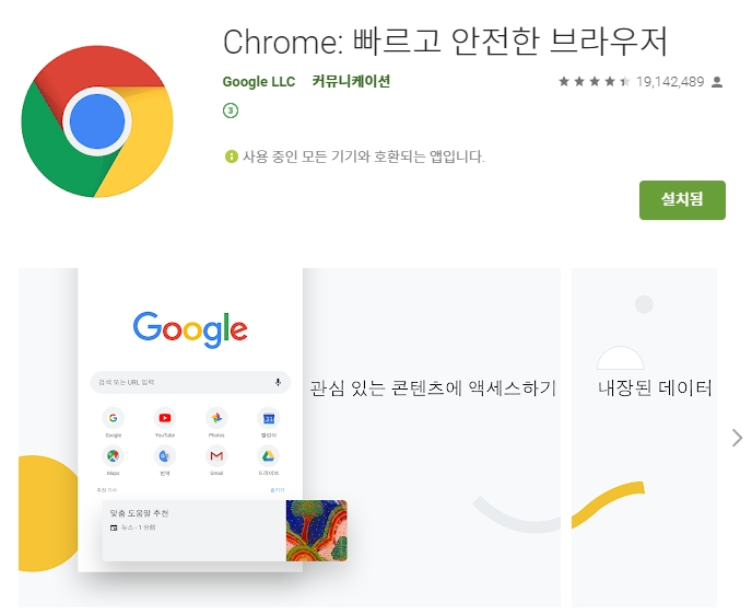 ▶ 크롬 브라우저 어플 : 구글플레이스토어 다운로드
