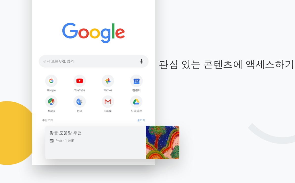 탭 한 번으로 즐기는 모든 콘텐츠: Chrome을 사용하면 Google 검색을 빠르게 이용할 뿐만 아니라, 좋아하는 모든 콘텐츠에 탭 한 번으로 액세스 할 수 있습니다. 새 탭 페이지에서 바로 즐겨 찾는 뉴스 사이트나 소셜 미디어를 탭해 보세요. 또한 대부분의 웹페이지에서 '탭하여 검색' 기능을 사용할 수 있습니다. 보고 있는 페이지에서 아무 단어나 구문을 탭하면 페이지에서 나가지 않고도 Google 검색을 시작할 수 있습니다.