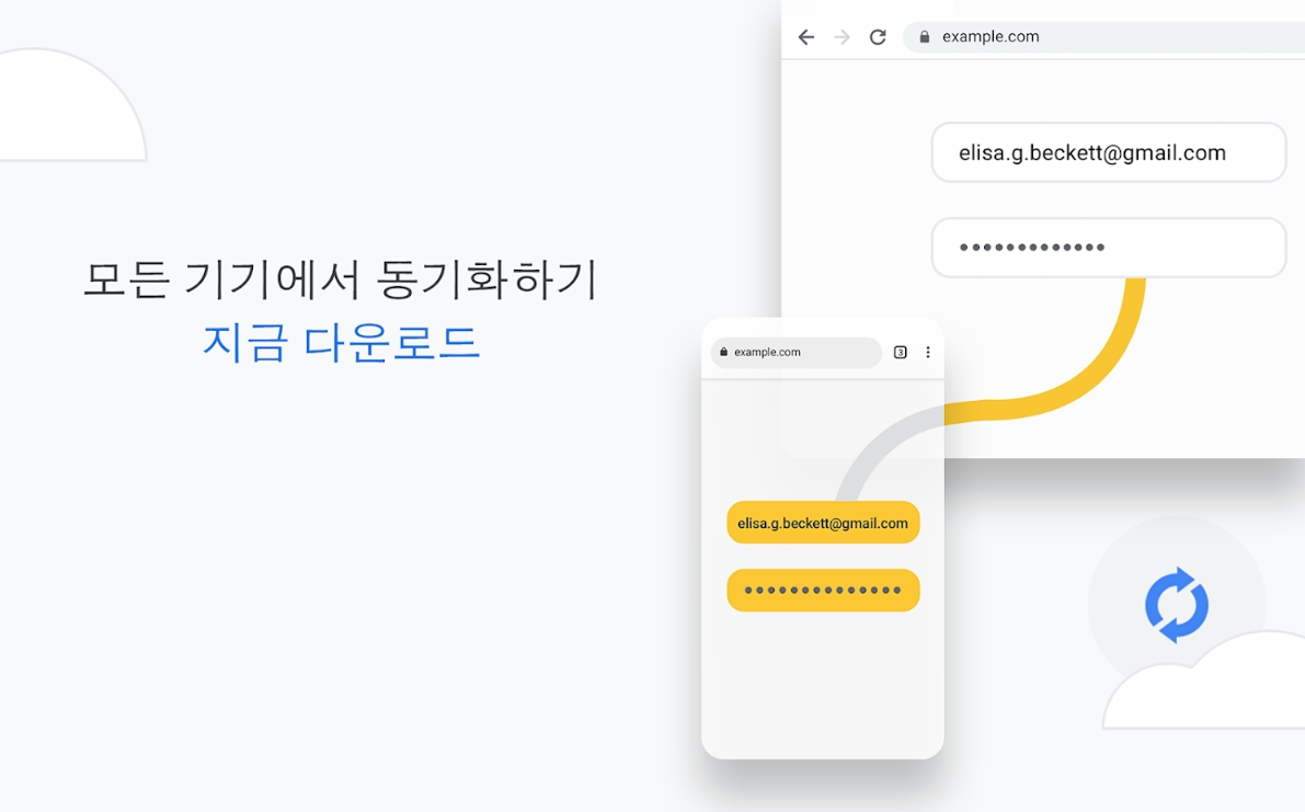 기기 간 Chrome 동기화: Chrome에 로그인하면 북마크, 비밀번호, 설정이 모든 기기에서 자동으로 동기화됩니다. 따라서 휴대전화, 태블릿, 노트북에서 모든 정보에 원활하게 액세스 할 수 있습니다.