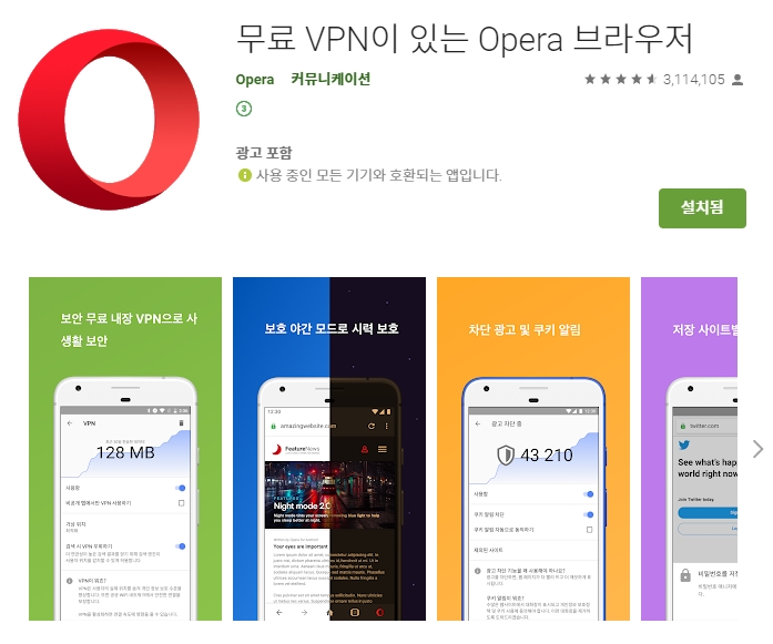 무료 VPN이 있는 Opera 브라우저 - Google Play 앱