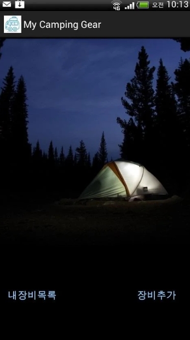 자신의 캠핑장비목록 이제 어플로 관리하세요. 추가할만한 기능 있으면 글남겨주세요 (장비목록에서 수정,삭제 하려면 해당목록을 짧게터치하여 선택후 길게터치)